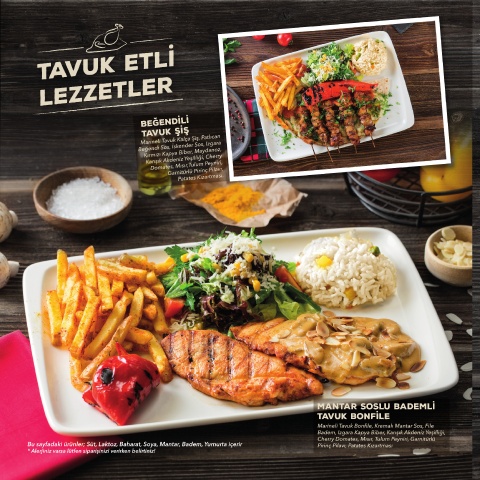 BEĞENDİLİ TA VUK ŞİŞ MANTAR SOSLU BADEMLİ TAVUK BONFİLE