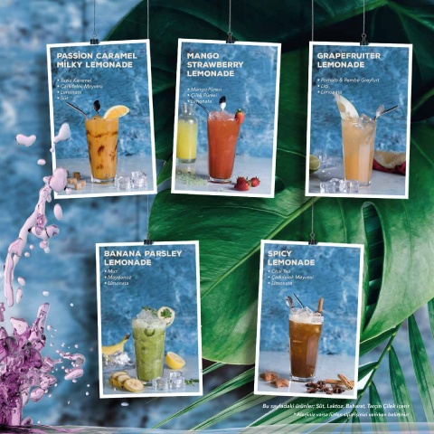 Pass on Caramel MANGO GRapeFRUITER M lky Lemonade STRAWBERRY Lemonade Lemonade • Tuzlu Karamel • • • • • Süt Banana Parsley SPICY Lemonade LEMONADE • Muz • Chai Tea • Maydanoz • • •