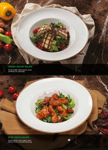 Karı ık ye illik, hellim peyniri, cherry domates, nar, zeytinyağı ÇITIR TAVUK SALATA Karı ık ye illik, tavuk nugget, sweet chili sos, cherry domates, zeytinyağ