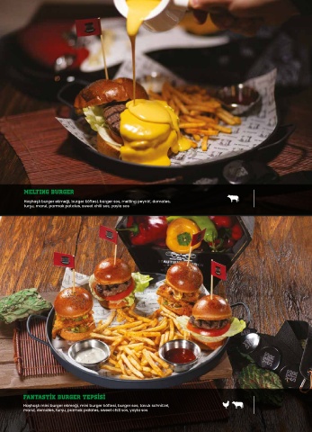 Ha ha lı burger ekmeği, burger köftesi, burger sos, melting peyniri, domates,