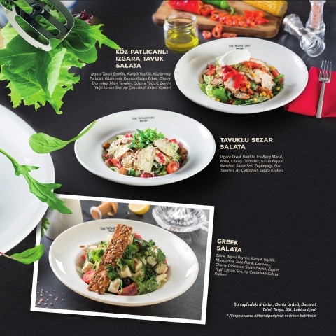 KÖZ PATLICANLI IZGARA TAVUK SALATA TAVUKLU SEZAR SALATA gREEK SALATA
