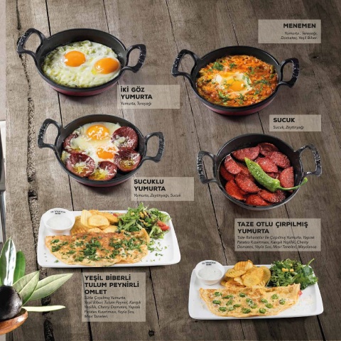 MENEMEN İKİ GÖZ YUMURTA SUCUK SUCUKLU YUMURTA TAZE OTLU ÇIRPILMIŞ YUMURTA YEŞİL BİBERLİ TULUM PEYNİRLİ OMLET