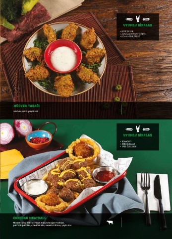 • LEFFE BRUNE • AMSTERDAM NAVIGATOR • BOMONTİ FİLTRESİZ Mücver, roka, yayla sos • BOMONTİ • AMSTERDAM • EFES ÖZEL SERİ Misket köfte, sebze kroket, naturel soğan halkası, parmak patates, cheddar sos, sweet chili sos, yayla sos