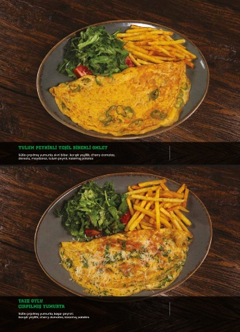 Sütle çırpılmı yumurta, sivri biber, karı ık ye illik, cherry domates, dereotu, maydanoz, tulum peynir, kızarmı patates taze otlu Sütle çırpılmı yumurta, ka ar peyniri, karı ık ye illik, cherry domates, kızarmı patates
